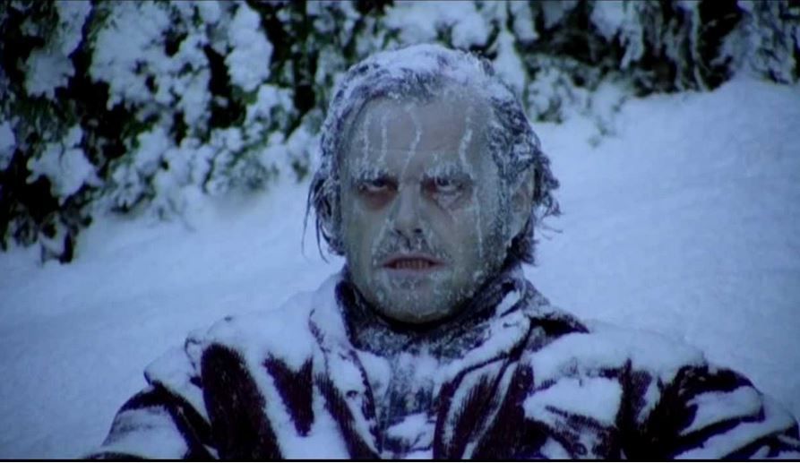 Dans les dernières scènes, le spectateur découvre le cadavre gelé de Jack Torrance (Jack Nicholson) dans le labyrinthe végétal où il a essayé de tuer sa femme Wendy (Shelley Duvall) et son jeune fils Danny (Danny Lloyd).